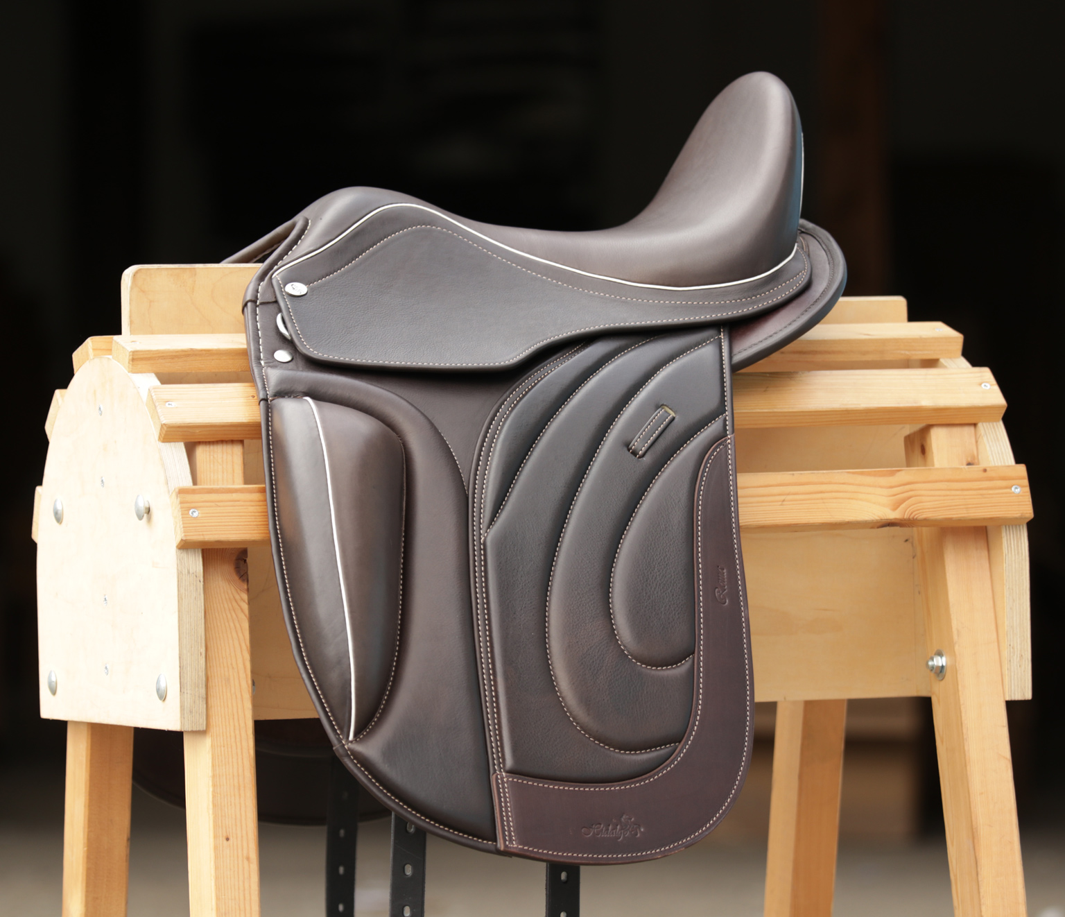Equipada con nuestro sistema de cincha de tres puntos, la Roma se sujeta perfectamente al lomo del caballo sin deslizarse.