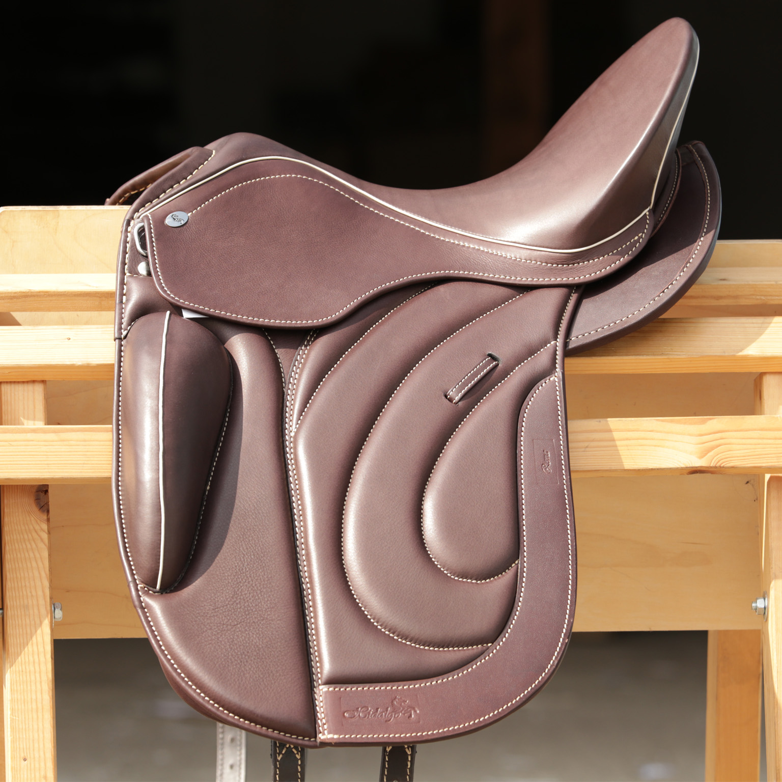 La silla de doma Hidalgo Roma, de nuevo desarrollo, impresiona por su asiento extremadamente cómodo y profundo, y por su amplia y suave superficie de contacto.